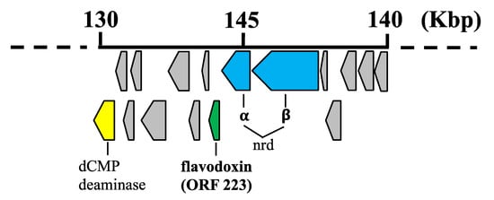- Harrison, A.O.; Moore, R.M.; Polson, S.W.; Wommack, K.E. Reannotation of the Ribonucleotide Reductase in a Cyanophage Reveals Life History Strategies Within the Virioplankton. Front. Microbiol. 2019, 10, 134. [Google Scholar] [CrossRef]
