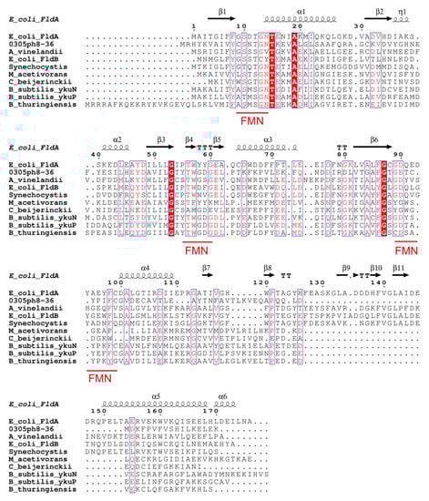 - Sancho, J. Flavodoxins: Sequence, folding, binding, function and beyond. Cell Mol. Life Sci. 2006, 63, 855–864. [Google Scholar] [CrossRef] [PubMed]