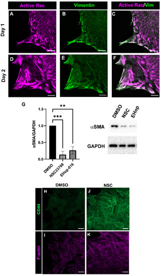 - Xu, S.W.; Liu, S.; Eastwood, M.; Sonnylal, S.; Denton, C.P.; Abraham, D.J.; Leask, A. Rac inhibition reverses the phenotype of fibrotic fibroblasts. PLoS ONE 2009, 4, e7438. [Google Scholar] [CrossRef][Green Version]