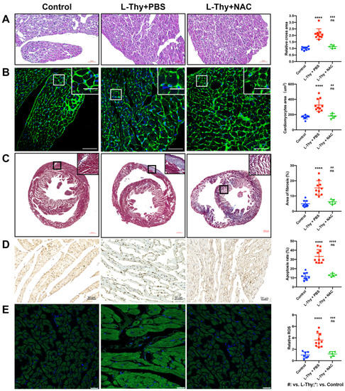 2.5. NAC Could Relieve L-Thy-Induced Myocardial Hypertrophy and the Cardiac ROS/Ca2+ Pathway