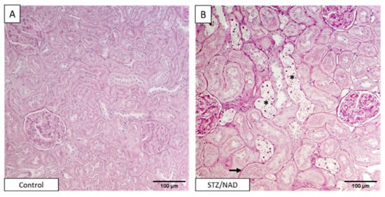 - Corremans, R.; D’Haese, P.C.; Vervaet, B.A.; Verhulst, A. L-Name administration enhances diabetic kidney disease development in an stz/nad rat model. Int. J. Mol. Sci. 2021, 22, 12767. [Google Scholar]