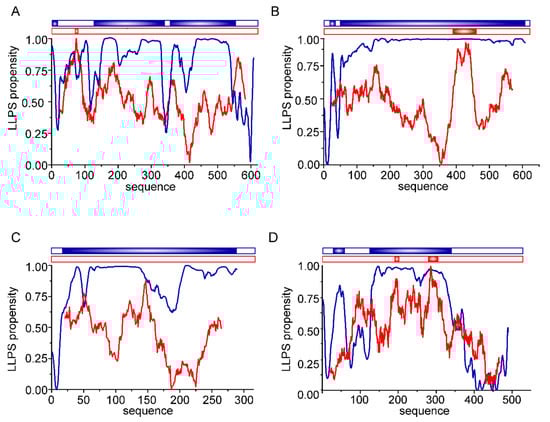 - Brocca, S.; Grandori, R.; Longhi, S.; Uversky, V. Liquid-Liquid Phase Separation by Intrinsically Disordered Protein Regions of Viruses: Roles in Viral Life Cycle and Control of Virus-Host Interactions. Int. J. Mol. Sci. 2020, 21, 9045. [Google Scholar] [CrossRef] [PubMed]