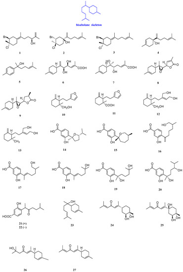 Structures of bisabolanes-type sesquiterpenoids 1–27.