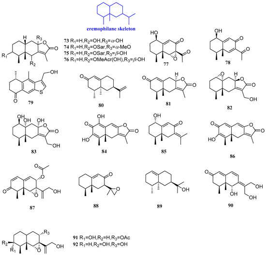 Structures of eremophilane-type sesquiterpenoids 73–92.