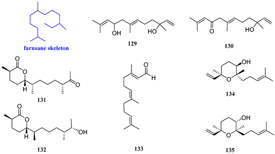 Structures of farnesane-type sesquiterpenoids 129–135.