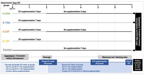 Therefore, the aim of the present study was to determine the effect of poEVs on embryo development and their impact on the embryonic transcriptome. Besides this, the effect of poEVs was compared with complete OF on embryo development by using an in vitro sequential system (2 days versus 7 days of IVC), considering the importance of mimicking the maternal environment and with the idea of using a unique strategy to improve porcine IVP. Additionally, an integrative analysis of poEV cargo and embryonic transcriptome datasets was performed to unveil the potential of poEVs as modulators of the embryonic transcriptome.