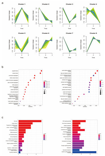 2.5. Mfuzz Cluster and Bioinformatic Analyses of DEGs from Self-Building RNA-Sequencing Database