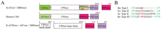- Li, G.; Li, D.; Wang, T.; He, S. Pyrimidine Biosynthetic Enzyme CAD: Its Function, Regulation, and Diagnostic Potential. Int. J. Mol. Sci. 2021, 22, 10253. [Google Scholar] [CrossRef]