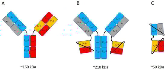 - Coloma, M.J.; Morrison, S.L. Design and production of novel tetravalent bispecific antibodies. Nat. Biotechnol. 1997, 15, 159–163. [Google Scholar] [CrossRef] [PubMed]