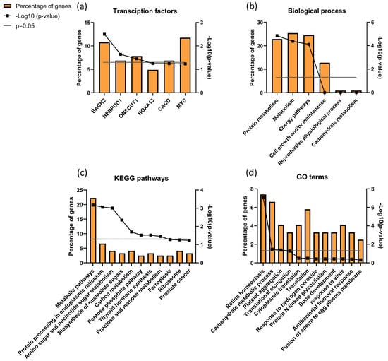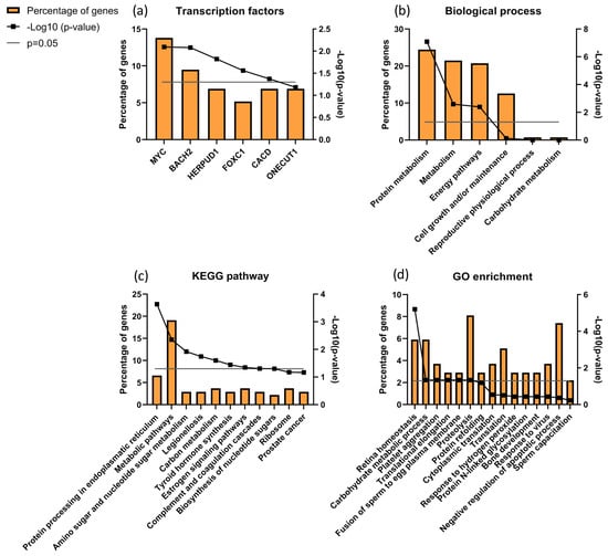 Data Visualization and Integrated Discovery (DAVID) functional annotation for KEGG pathways and gene ontology (GO) term (August 2022), and cluster analysis (October 2022) [], FunRich transcription factor analysis (August 2022) [], and MetaboAnalyst 5.0 random forest analysis (September 2022) [] were also performed to better characterize the altered proteins.