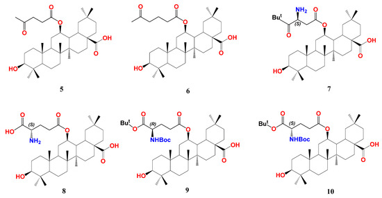 Structure of 12β-esters of OA (5—10) [83,84] p. Atoms were colored by element.
