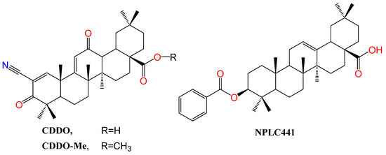 - Wang, Y.; Porter, W.W.; Suh, N.; Honda, T.; Gribble, G.W.; Leesnitzer, L.M.; Plunket, K.D.; Mangelsdorf, D.J.; Blanchard, S.G.; Willson, T.M.; et al. A Synthetic Triterpenoid, 2-Cyano-3,12-Dioxooleana-1,9-Dien-28-Oic Acid (CDDO), Is a Ligand for the Peroxisome Proliferator-Activated Receptor Gamma. Mol. Endocrinol. 2000, 14, 1550–1556. [Google Scholar] [CrossRef][Green Version]