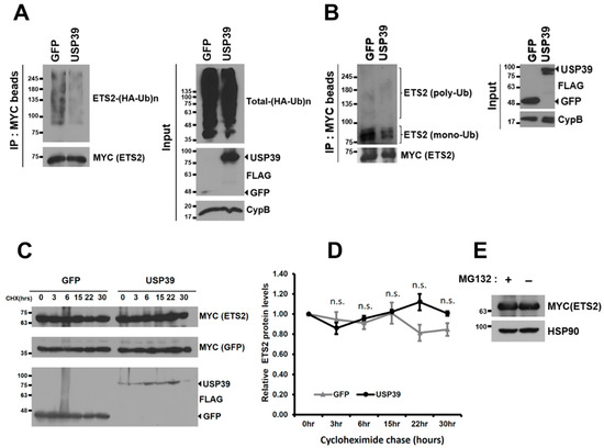 3.4. USP39 Deubiquitinates ETS2 but Does Not Affect Its Protein Stability