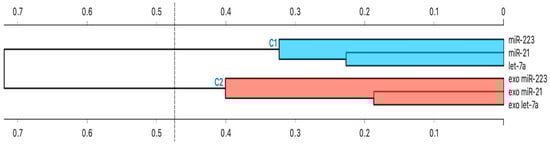 Cluster analysis showed that all intracellular miRNAs had similar behavior. The same is true the same for exosomal miRNAs (Figure 6).
