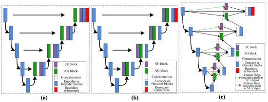 Description of the variants’ architecture, where (a) represent serial AG followed by SE, (b) represent the serial SE followed by AG, and (c) show both parallel architectures.