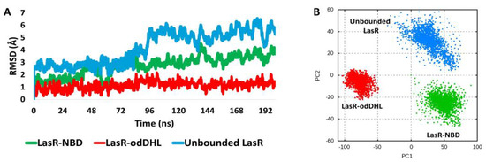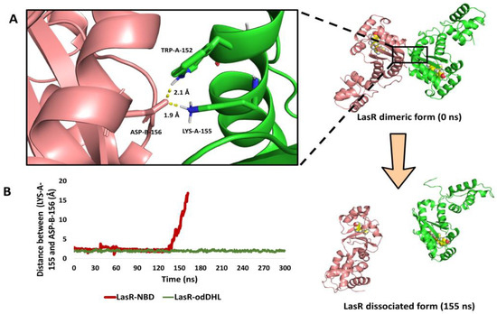 3.5.3. NBD Induces LasR Complex Dissociation upon MD Simulation