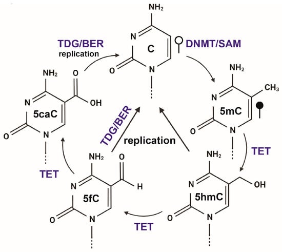- Kohli, R.M.; Zhang, Y. Tet Enzymes, Tdg and the Dynamics of DNA Demethylation. Nature 2013, 502, 472–479. [Google Scholar] [CrossRef]