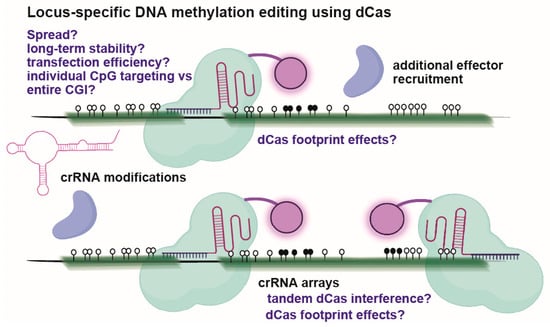 - Lei, Y.; Zhang, X.; Su, J.; Jeong, M.; Gundry, M.C.; Huang, Y.-H.; Zhou, Y.; Li, W.; Goodell, M.A. Targeted DNA Methylation in Vivo Using an Engineered Dcas9-Mq1 Fusion Protein. Nat. Commun. 2017, 8, 16026. [Google Scholar] [CrossRef] [PubMed]
