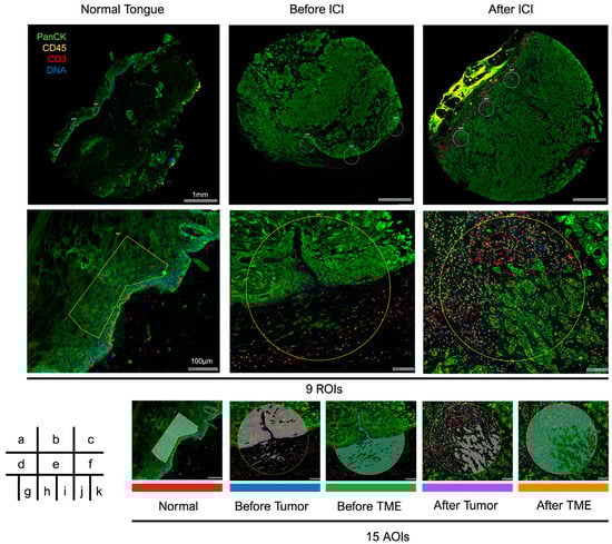 - Kulasinghe, A.; Taheri, T.; O’Byrne, K.; Hughes, B.G.M.; Kenny, L.; Punyadeera, C. Highly multiplexed digital spatial profiling of the tumor microenvironment of head and neck squamous cell carcinoma patients. Front. Oncol. 2021, 10, 607349. [Google Scholar] [CrossRef]