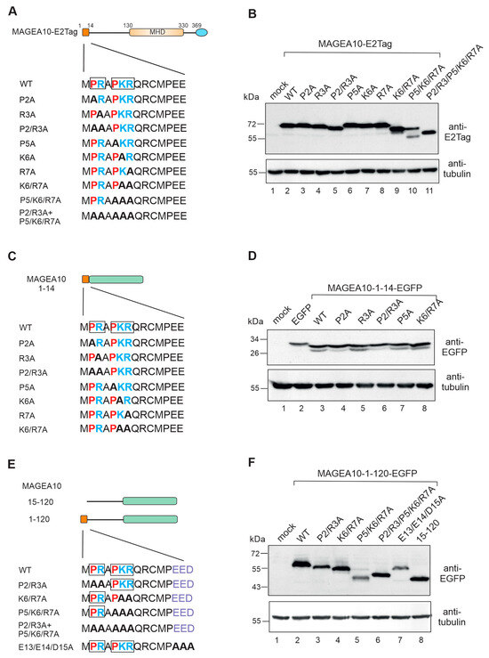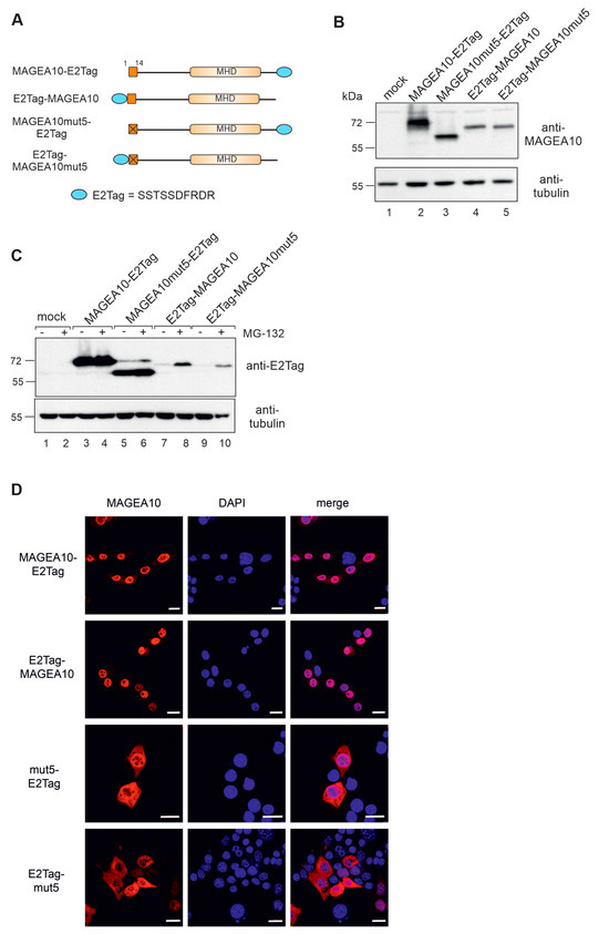 - Doyle, J.M.; Gao, J.; Wang, J.; Yang, M.; Potts, P.R. MAGE-RING Protein Complexes Comprise a Family of E3 Ubiquitin Ligases. Mol. Cell 2010, 39, 963–974. [Google Scholar] [CrossRef]