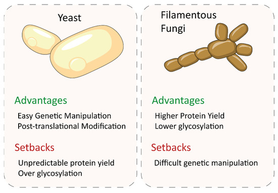 Figure 8. Comparison of yeasts and filamentous ascomycete fungi as expression systems of fungal laccases.