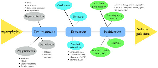 Sulfated Galactans from Agarophytes: Review of Extraction Methods, Structural Features, and Biological Activities