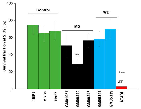 3.1. Cellular Radiosensitivity of MD and WD Fibroblasts