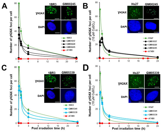 - Rothkamm, K.; Löbrich, M. Evidence for a lack of DNA double-strand break repair in human cells exposed to very low x-ray doses. Proc. Natl. Acad. Sci. USA 2003, 100, 5057–5062. [Google Scholar] [CrossRef] [PubMed]