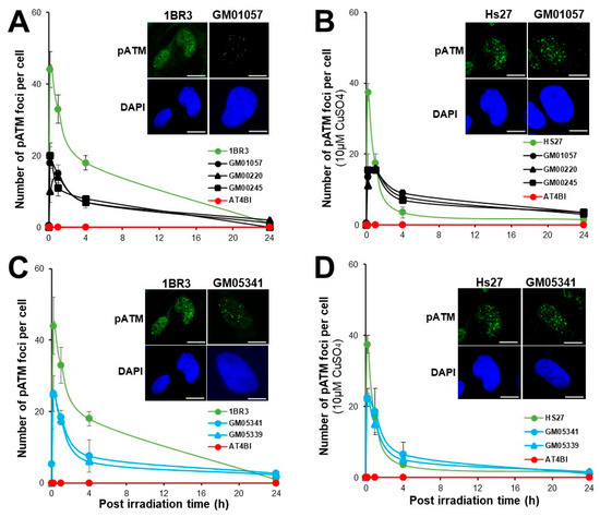 - Ferlazzo, M.; Berthel, E.; Granzotto, A.; Devic, C.; Sonzogni, L.; Bachelet, J.T.; Pereira, S.; Bourguignon, M.; Sarasin, A.; Mezzina, M.; et al. Some mutations in the xeroderma pigmentosum D gene may lead to moderate but significant radiosensitivity associated with a delayed radiation-induced ATM nuclear localization. Int. J. Radiat. Biol. 2020, 96, 394–410. [Google Scholar] [CrossRef]