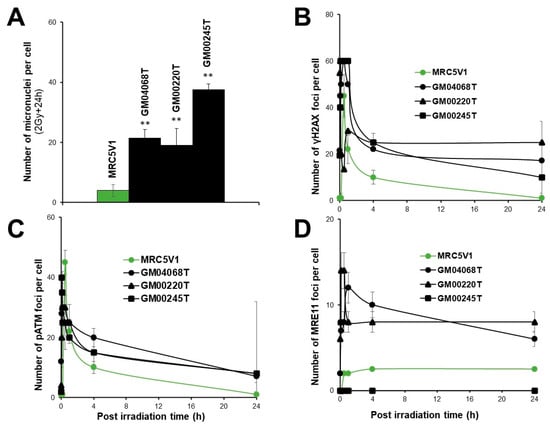 3.5. Abnormal Number of MRE11 Foci in MD and WD Fibroblasts