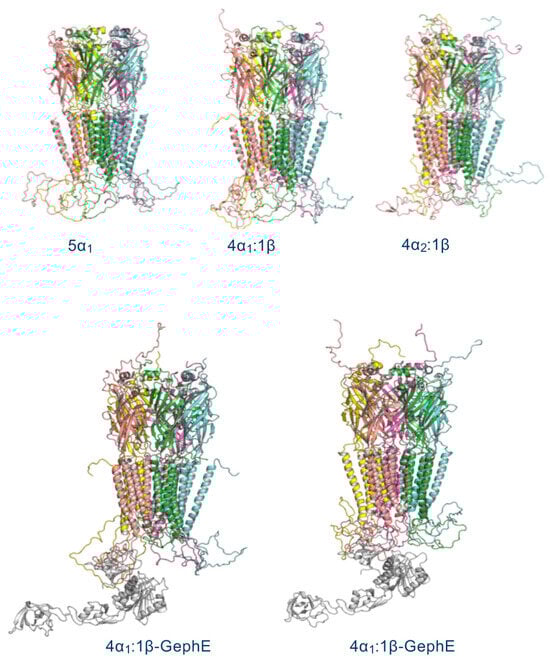 - Zhu, H.; Gouaux, E. Architecture and assembly mechanism of native glycine receptors. Nature 2021, 599, 513–517. [Google Scholar] [CrossRef] [PubMed]