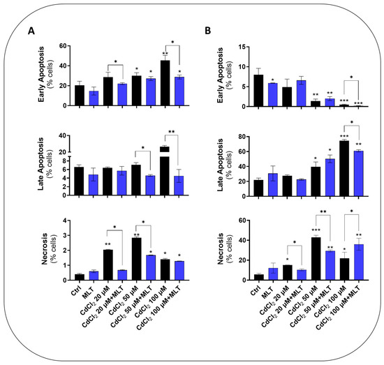3.1. CdCl2 Toxicity and Cytoprotective Effect of MLT