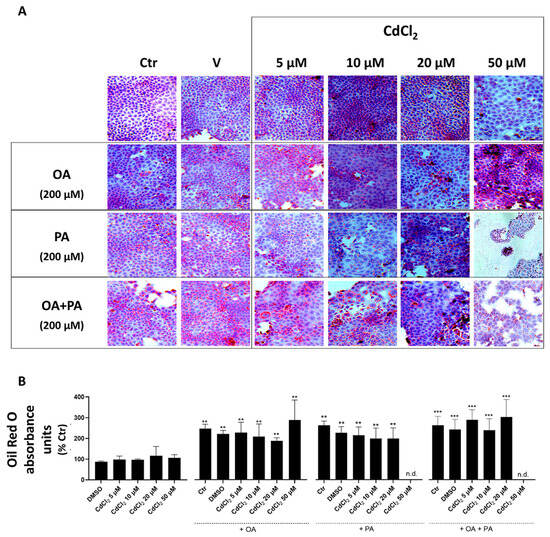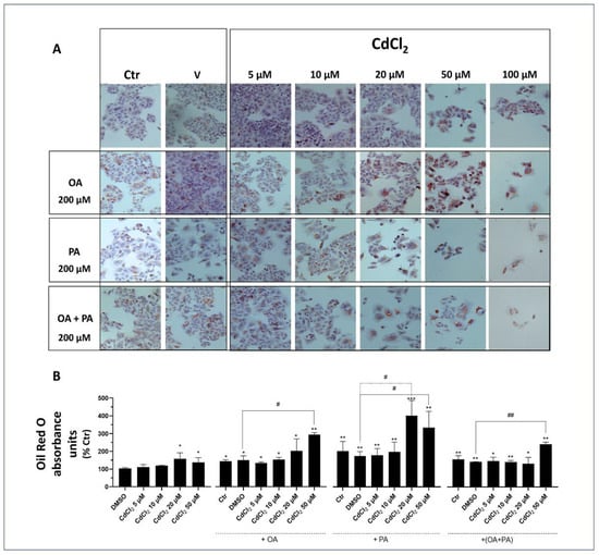 3.2. Effect of CdCl2 and FFA Treatments on Cellular Lipid Accumulation