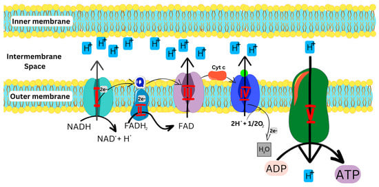 As illustrated in Figure 2, the OXPHOS pathway starts with the entry of electrons into the respiratory chain via Complexes I and II, which are subsequently transferred to Complexes III and IV, respectively, and then used by Complex V to generate energy. [1,5,11,15].