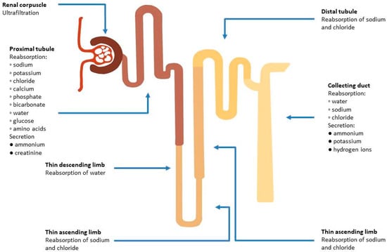 Uromodulin or Tamm–Horsfall protein is a kidney specific protein produced by cells of the thick ascending limbs and early distal convoluted tubules, which is found in urine in polymerized and non-polymerized forms under normal circumstances. So far its several important functions have been identified including ion transportation in the ascending limb in nephrons, fluid and electrolyte balance, prevention of kidney stones and innate immunity of the urinary tract [97]. Moreover, mutations in the uromodulin gene (UMOD) cause autosomal dominant tubulointerstitial kidney disease or medullary cystic kidney disease and some variants are associated with the development of hypertension and chronic kidney disease, which proves its important role in the correct development and functioning of the kidney [98,99,100]. LaFavers’ review paper takes a look at new findings on physiological concepts surrounding uromodulin, the separate regulatory pathways for its different forms, and it provides recommendations for reporting uromodulin levels [101]. A study conducted by M. Pruijm et al. confirmed the utility of uromodulin as a biomarker of tubular function, and large study on more than 3000 patients undergoing coronary angiography further proved its value in prognosis of all-cause mortality [102,103]. Another novel biomarker alpha-1 microglobulin (A1M) is a small globular protein synthesized by the liver, which is typically entirely reabsorbed by the renal tubule. In vivo, it has an antioxidant function [104]. The concentration of both of the molecules was observed to rise in the presence of tubular cell damage. Independently from GFR, both low levels of urine uromodulin and high levels of urine A1M may be associated with a greater risk of developing cardiovascular disease and mortality [105].