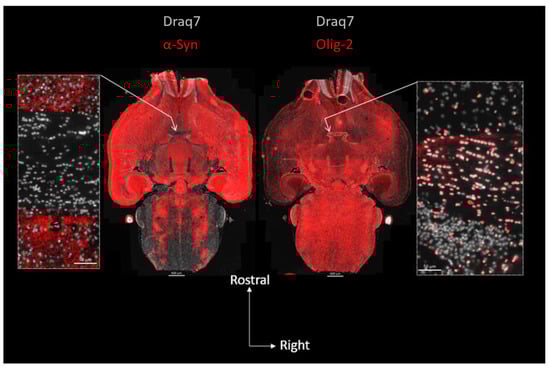 - Shults, C.W.; Rockenstein, E.; Crews, L.; Adame, A.; Mante, M.; Larrea, G.; Hashimoto, M.; Song, D.; Iwatsubo, T.; Tsuboi, K.; et al. Neurological and Neurodegenerative Alterations in a Transgenic Mouse Model Expressing Human α-Synuclein under Oligodendrocyte Promoter: Implications for Multiple System Atrophy. J. Neurosci. 2005, 25, 10689–10699. [Google Scholar] [CrossRef]