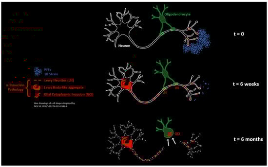 - Reddy, K.; Dieriks, B.V. Multiple System Atrophy: α-Synuclein Strains at the Neuron-Oligodendrocyte Crossroad. Mol. Neurodegener. 2022, 17, 77. [Google Scholar] [CrossRef]