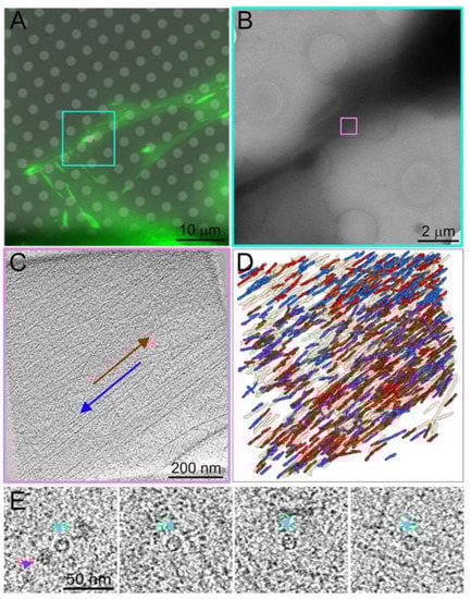 - Weber, M.S.; Wojtynek, M.; Medalia, O. Cellular and Structural Studies of Eukaryotic Cells by Cryo-Electron Tomography. Cells 2019, 8, 57. [Google Scholar] [CrossRef] [PubMed]