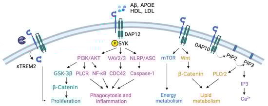 - Zheng, H.; Jia, L.; Liu, C.-C.; Rong, Z.; Zhong, L.; Yang, L.; Chen, X.-F.; Fryer, J.D.; Wang, X.; Zhang, Y.-W.; et al. TREM2 Promotes Microglial Survival by Activating Wnt/β-Catenin Pathway. J. Neurosci. 2017, 37, 1772–1784. [Google Scholar] [CrossRef]