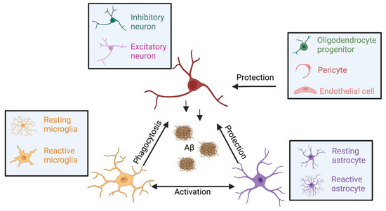 - Fakhoury, M. Microglia and Astrocytes in Alzheimer’s Disease: Implications for Therapy. Curr. Neuropharmacol. 2018, 16, 508–518. [Google Scholar] [CrossRef]