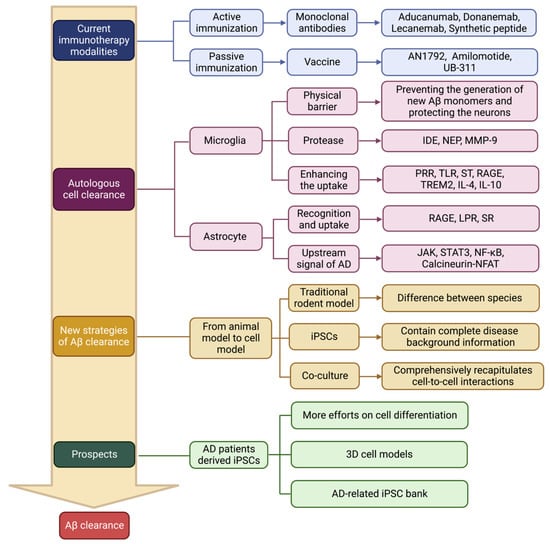 Chicago/Turabian StyleCai, Wenjun, Tong Wu, and Ning Chen. 2023. "The Amyloid-Beta Clearance: From Molecular Targets to Glial and Neural Cells" Biomolecules 13, no. 2: 313. https://doi.org/10.3390/biom13020313