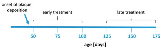 Here, we aim to evaluate the effect of commencing a fingolimod treatment at two relevant time points: (i) before or at the very early stages of plaque deposition and (ii) at advanced stages of plaque deposition when neuroinflammatory activation was already present in our animal model of AD.
