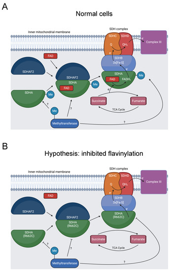- Hao, H.-X.; Khalimonchuk, O.; Schraders, M.; Dephoure, N.; Bayley, J.-P.; Kunst, H.; Devilee, P.; Cremers, C.W.R.J.; Schiffman, J.D.; Bentz, B.G.; et al. SDH5, a Gene Required for Flavination of Succinate Dehydrogenase, Is Mutated in Paraganglioma. Science 2009, 325, 1139–1142. [Google Scholar] [CrossRef]