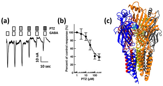 - Macdonald, R.L.; Barker, J.L. Pentylenetetrazol and penicillin are selective antagonists of GABA-mediated post-synaptic inhibition in cultured mammalian neurones. Nature 1977, 267, 720–721. [Google Scholar] [CrossRef]