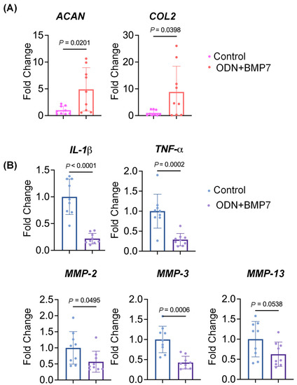 3.2. ODN+BMP7 Treatment Decreases the Expression of Pro-Inflammatory Cytokine Genes in SFT