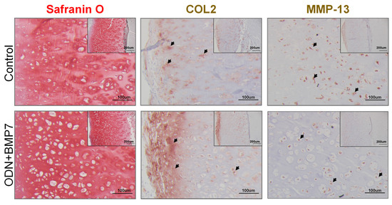 3.3. ODN+BMP7 Treatment Preserves Cartilage Integrity