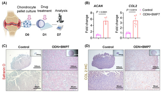 3.5. ODN+BMP-7 Promotes Chondrogenesis of Human OA Chondrocytes
