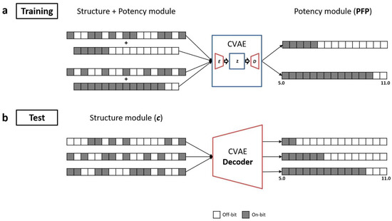 The introduction of a structure–potency fingerprint (SPFP) provided the basis for a new approach in potency prediction. The underlying idea was to unify structural and potency encodings in a modular fingerprint representation of a constant format such that the potency module representing a numerical value could be predicted from the structural module of test compounds using deep learning. This unified and intuitive modular encoding of compound structure and potency enabled the derivation of a chemical language model such as a CVAE using SPFPs of training compounds to predict the potency module of test compounds using only their structure module as input.