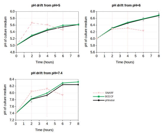 3.3. Application to the Measure of the pH-Drift in Cell Culture Medium