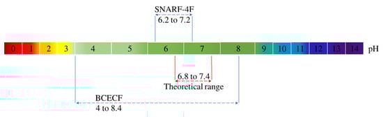 Validity ranges of the BCECF and SNARF-4F probes deduced from their respective calibration curves.